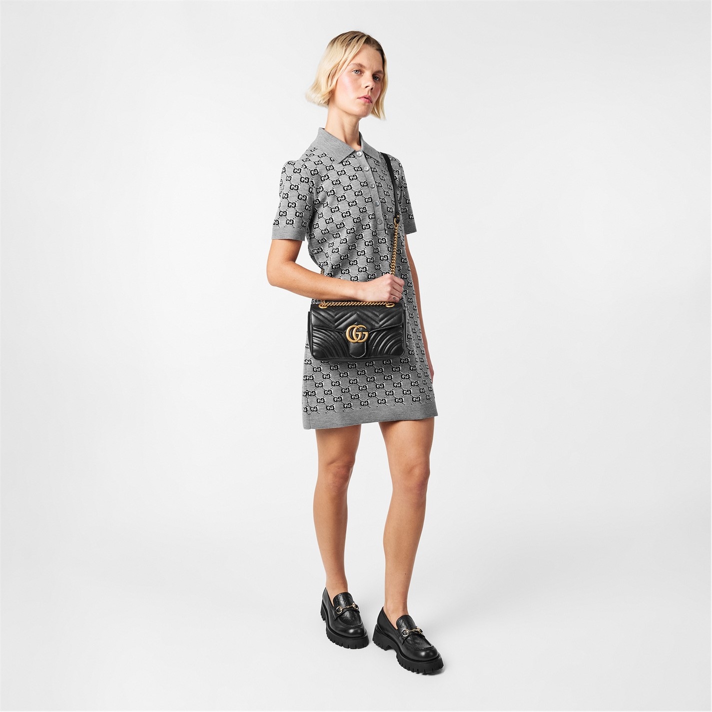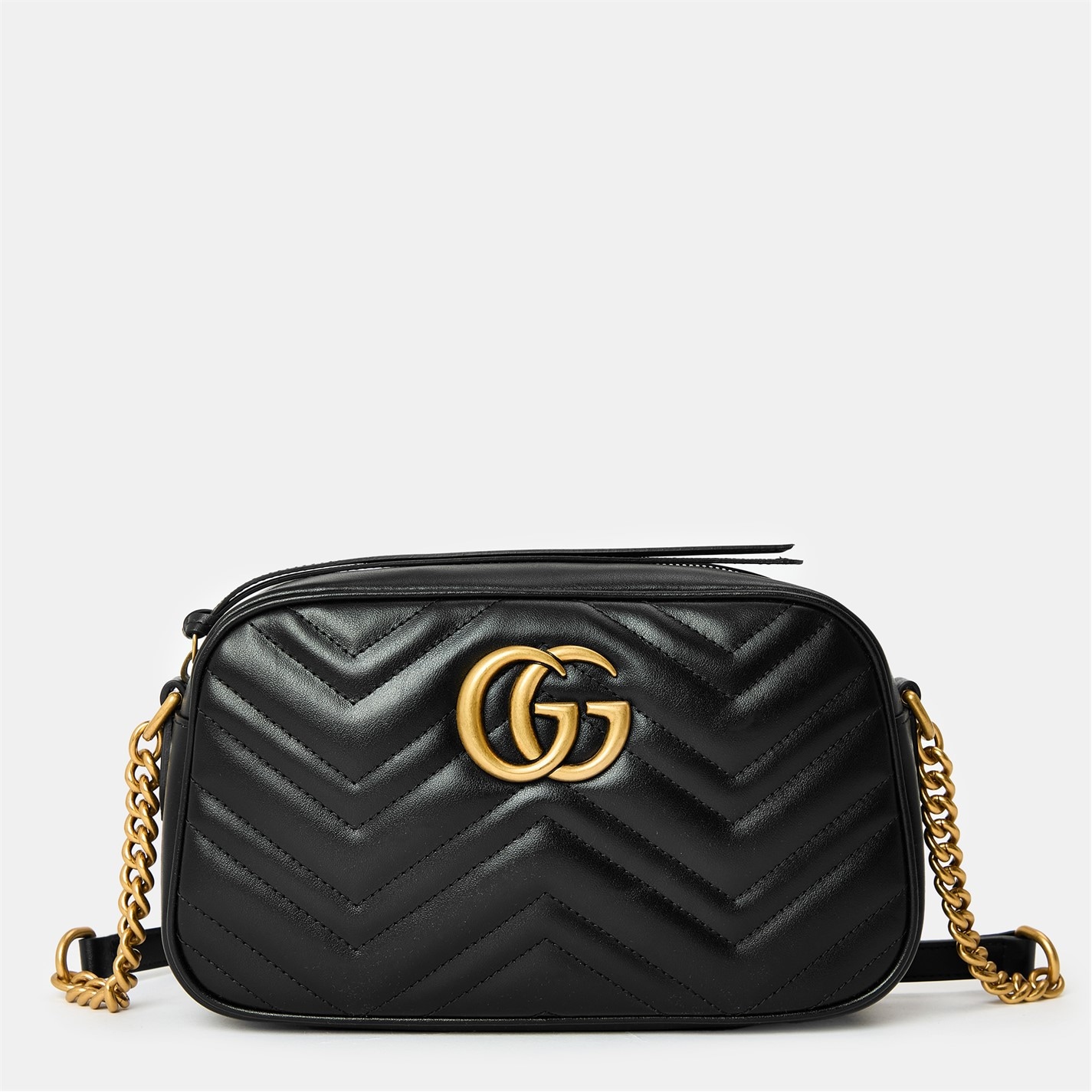 Acclaimed for its impeccable craftsmanship and striking designs, Gucci presents the GG Marmont Small Shoulder Bag. Featuring mattelassé quilting and decorated in solid block colouring for easy styling, this women's camera bag is perfect for meeting friends for brunch or carrying your airport essentials. Product Highlights: - The house's signature GG logo, referencing the founder's initials, ensures instant brand recognition. - A fully lined central compartment and an additional pocket provide space for on-the-go essentials. Composition: Fabric: leather. Lining: cotton linen. Hardware: brass. Dimensions: W24 cm x H13 cm x D7 cm Composition: Clean with a soft dry cloth.