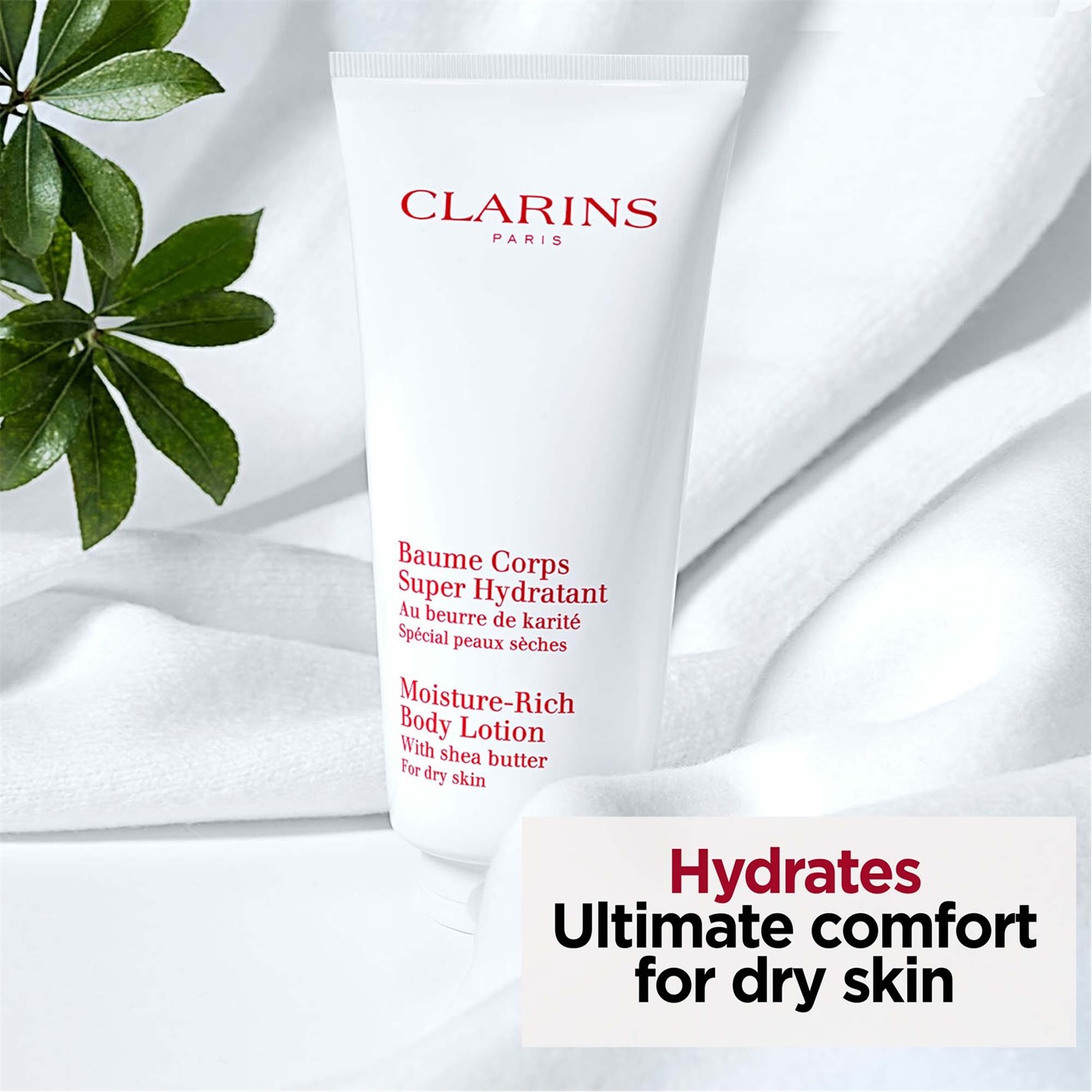 Experience deep hydration with this ultra-cocoon texture body lotion from Clarins. Powered by nourishing shea butter, this moisture-rich formula delivers immediate comfort to dry skin. The lightweight yet intensely hydrating body lotion absorbs quickly, leaving skin feeling soft and protected throughout the day. Product Highlights: - The ultra-cocoon texture melts into skin for immediate absorption and lasting comfort. - Rich in shea butter, this formula provides deep nourishment and protection for dry skin. - Delivers intense hydration while maintaining a lightweight feel on the skin. - The fast-absorbing formula makes it perfect for daily use, fitting seamlessly into any skincare routine. - Leaves skin feeling soft, supple and deeply moisturised with a comfortable, non-greasy finish.