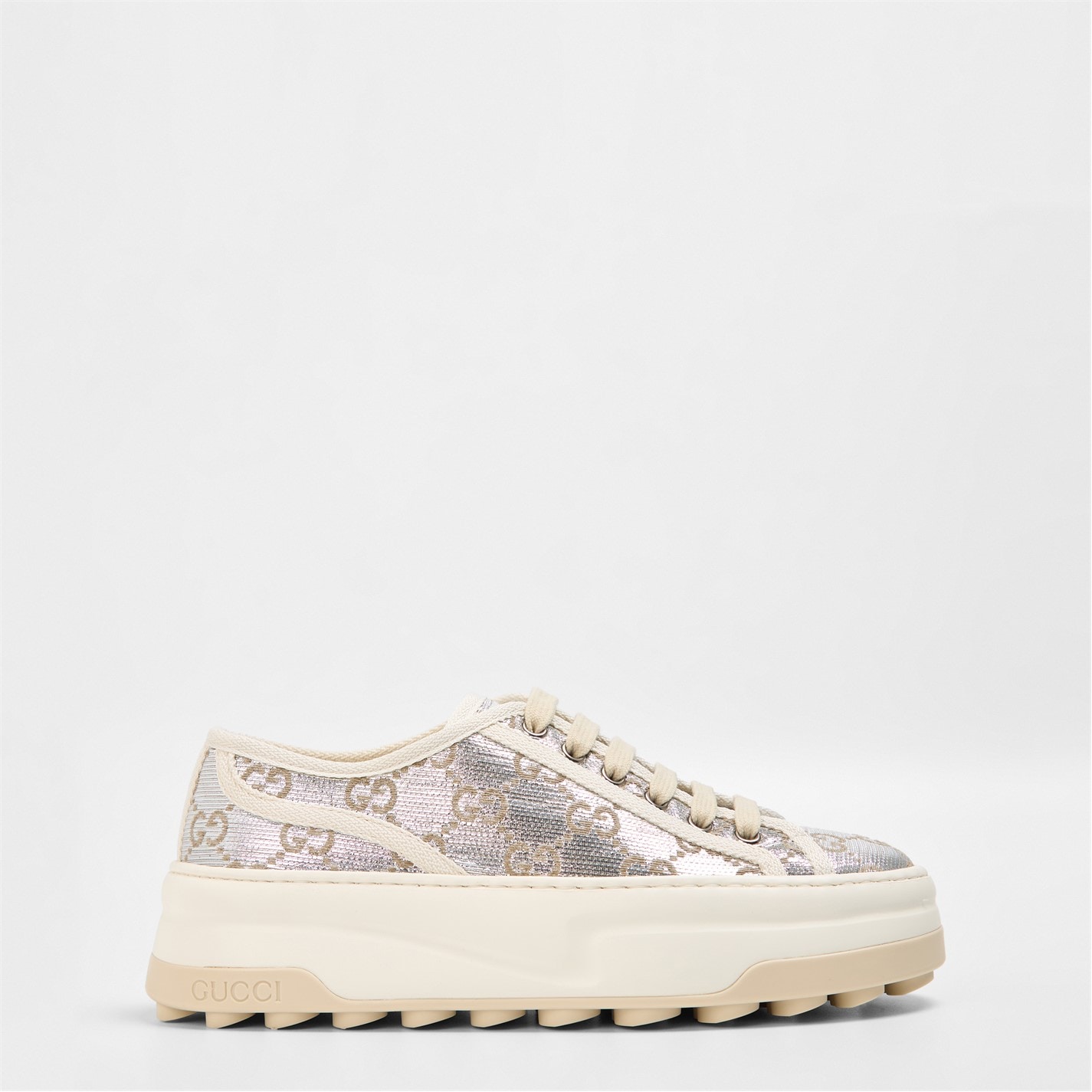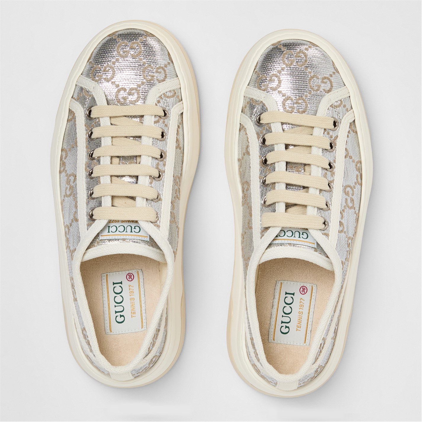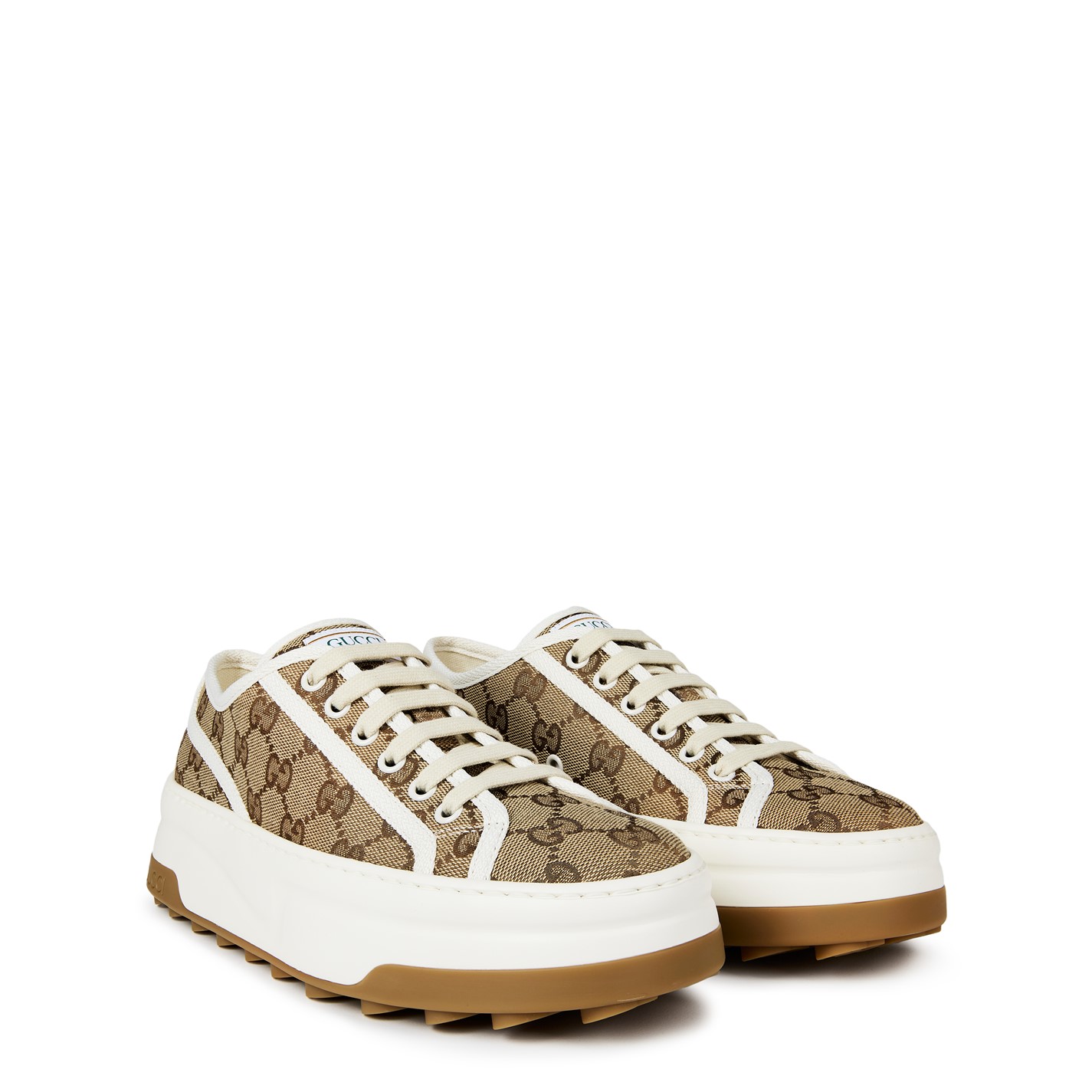 Revitalise your everyday ensemble with Gucci's striking Tennis 1977 Trainers. Inspired by vintage styles and the label's archival designs, these low-top trainers for women are perfect for meeting friends for a sophisticated brunch or running errands in the city. Product Highlights: - Intricately embroidered GG designs on the uppers ensure striking style- and instant brand recognition. - Chunky flat soles add lift to your walk, while the patterned treads provide traction and grip. - Composition: Uppers: 100% canvas. Soles: 100% rubbers. - Care: Clean with a soft, dry cloth or brush.
