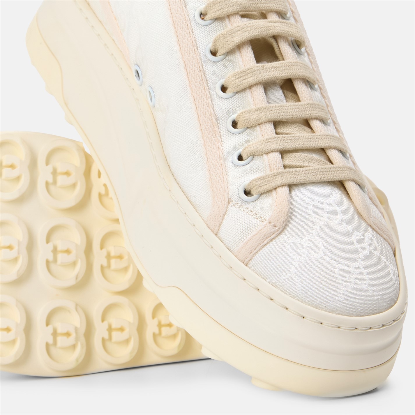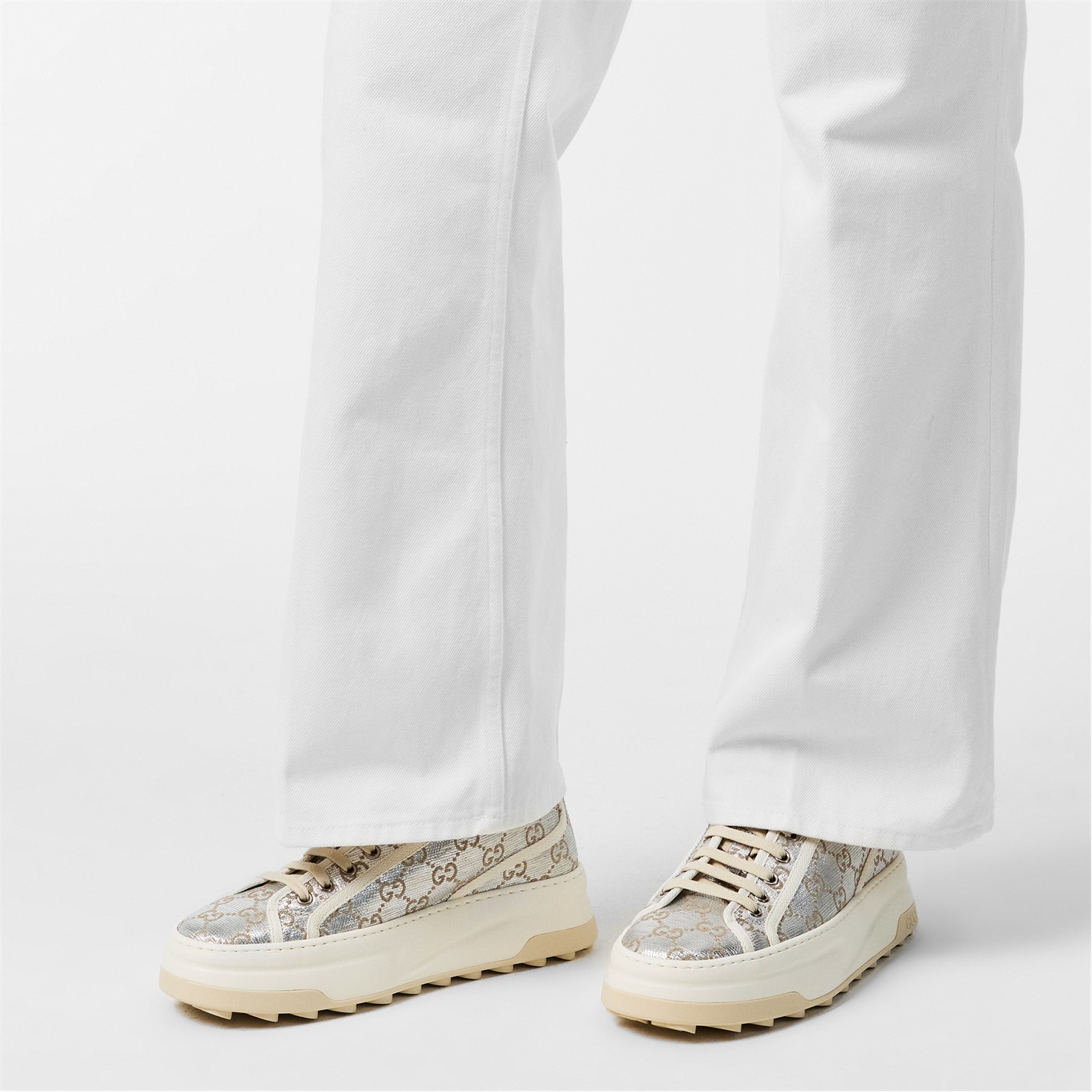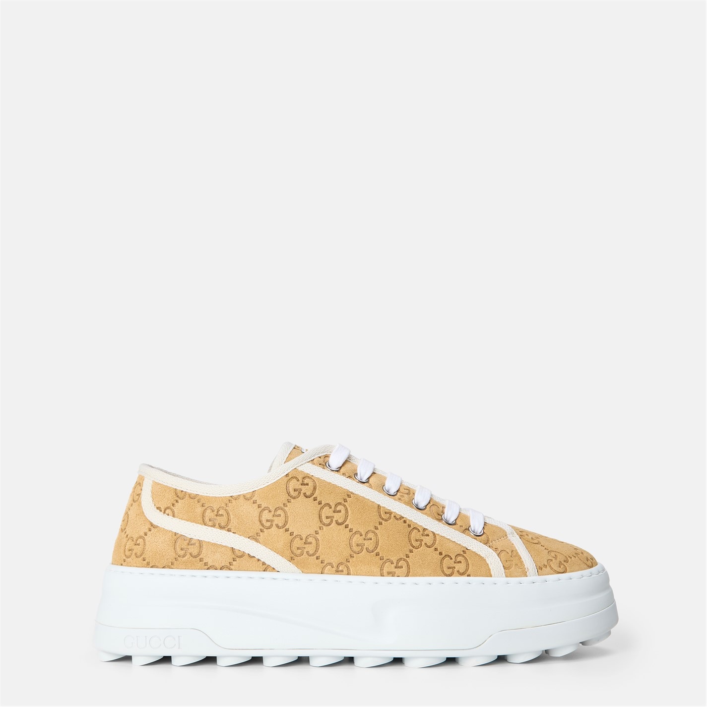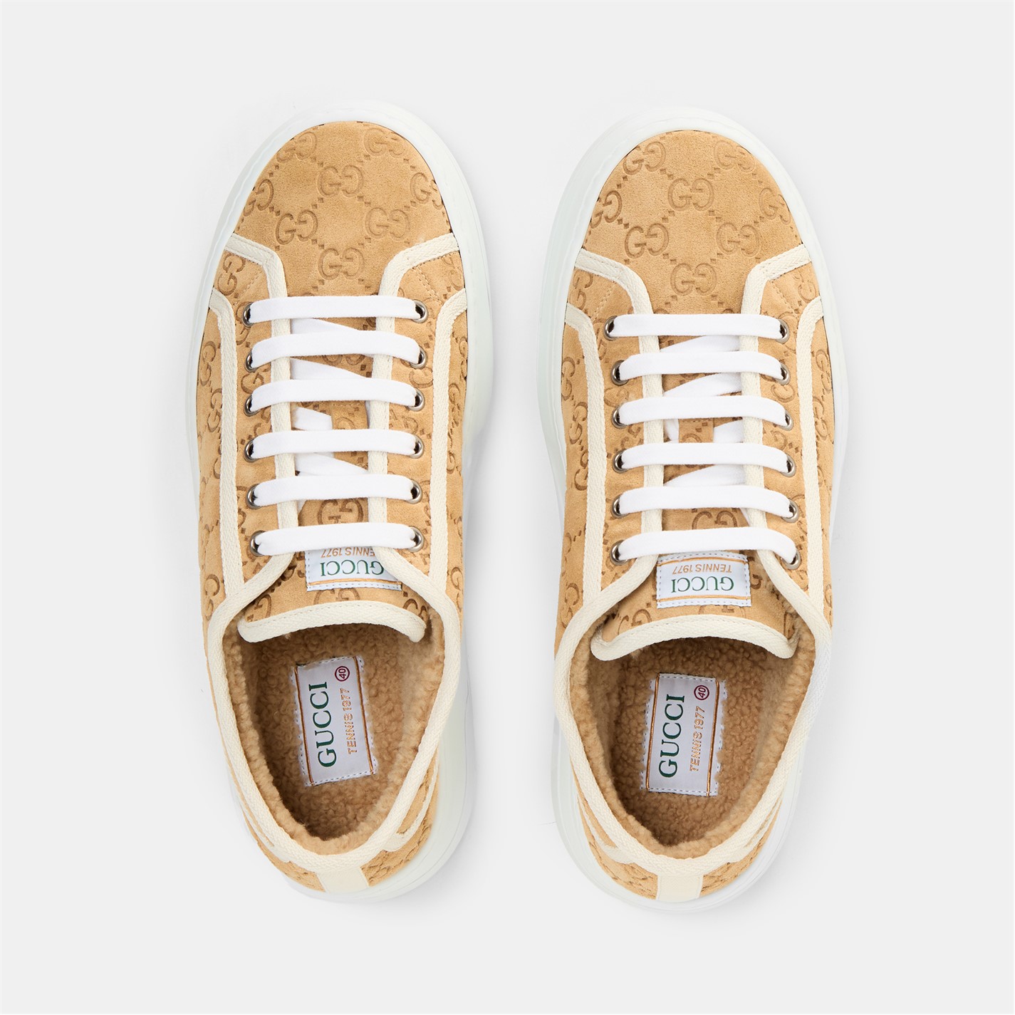 Revitalise your everyday ensemble with Gucci's striking Tennis 1977 Trainers. Inspired by vintage styles and the label's archival designs, these low-top trainers for women are perfect for meeting friends for a sophisticated brunch or running errands in the city. Product Highlights: - Intricately embroidered GG designs on the uppers ensure striking style- and instant brand recognition. - Chunky flat soles add lift to your walk, while the patterned treads provide traction and grip. - Composition: Uppers: 100% canvas. Soles: 100% rubbers. - Care: Clean with a soft, dry cloth or brush.