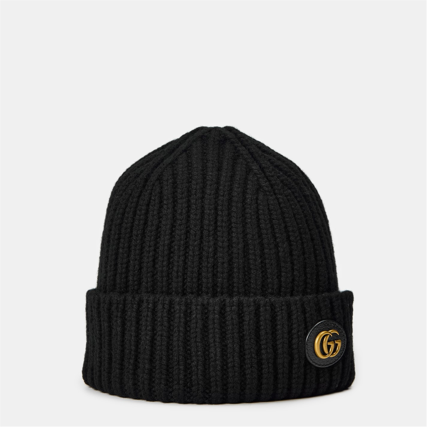 Elevate your winter ensemble with Gucci's Wool Cashmere Hat with Double G. Whether you are strolling through the city streets or attending a stylish event, this hat is the perfect accessory to complete your outfit. With a heritage rooted in timeless elegance, Gucci is synonymous with impeccable craftsmanship, premium materials, and trend-setting designs. Meticulously crafted from a high-quality blend of sand wool and cashmere, this hat offers a perfect combination of style and comfort. The hat's rib-knit texture ensures the hat feels extra cosy, while the stunning camel colourway delivers a chic and versatile appeal that will effortlessly complement any ensemble. Featuring a cleverly designed folded cuff, it adds a touch of refinement, ensuring a snug fit while providing an air of effortless style. To complete the design, the oval lamb leather patch on the folded cuff is appliqued with the brand's iconic double G motif in gold-tone hardware a symbol of luxury and timeless sophistication. Composition: 85% Wool, 15% Cashmere. Dry clean only.